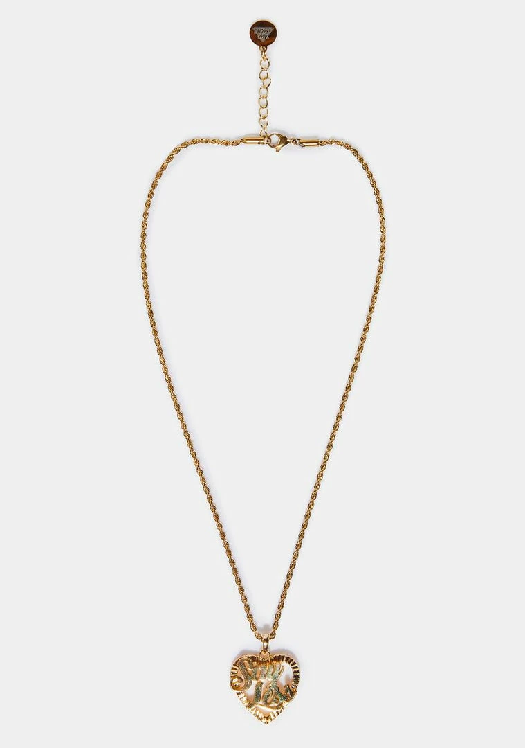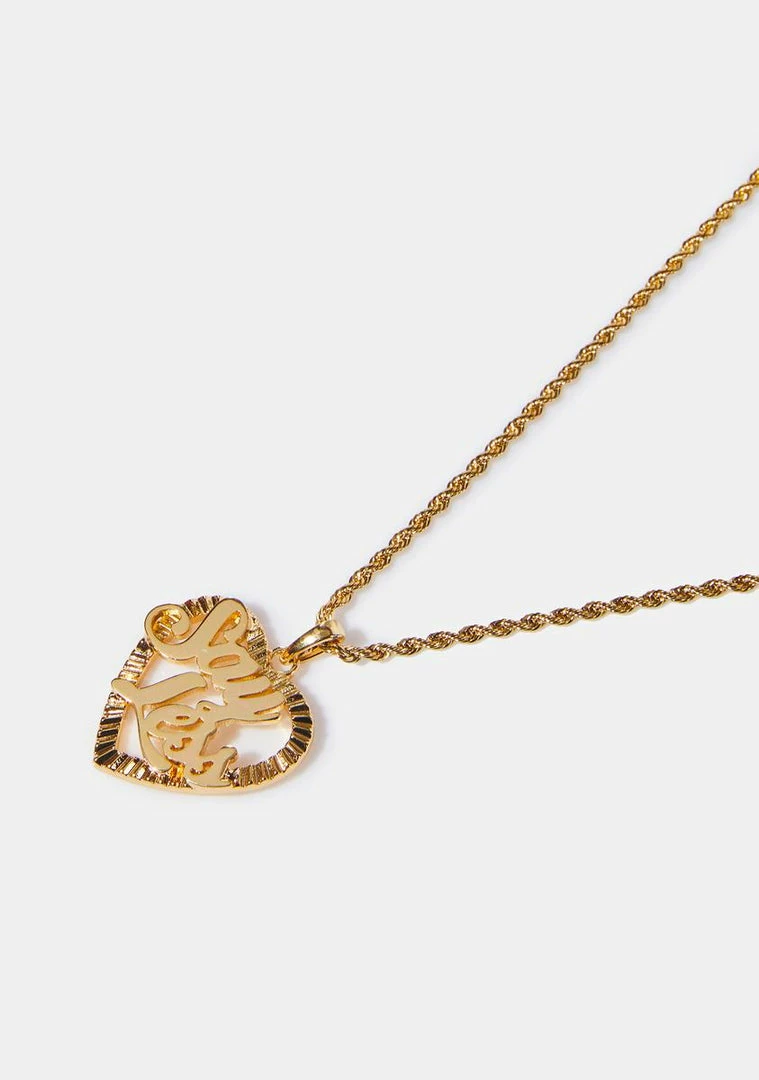 you don’t even have to ask. This 18ct plated gold necklace has a rope chain design with a ‘Say Less’ heart pendant and a lobster claw clasp closure.