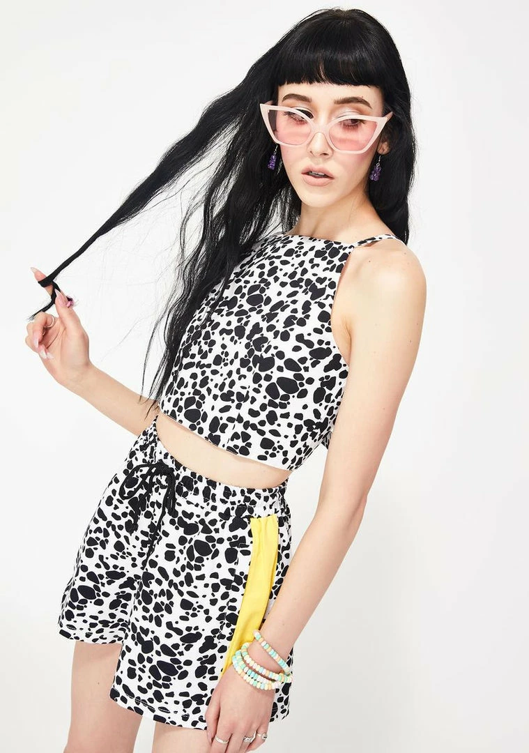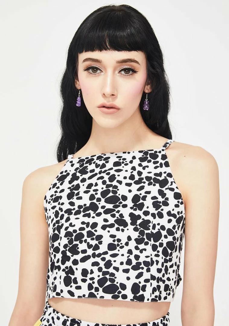 cuz you bring รขยยem good fortune, babe! Keep it cute in this sassy lil crop top that has a high square neckline, adjustable shoulder straps, and a dalmatian print all ova.