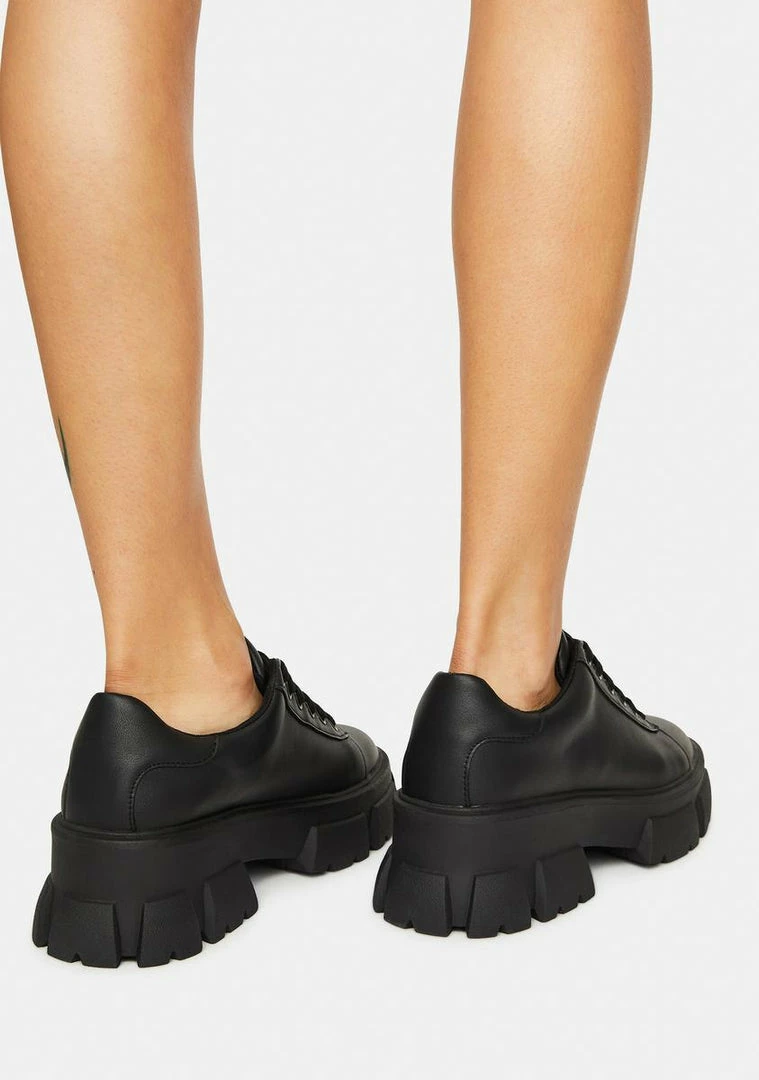 feature a chunky bubble platform sole and slight heel and a vegan suede lace up upper.